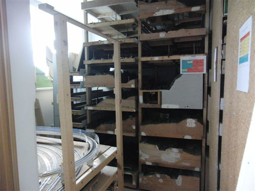 Am 6 .Dezember erfolgte dann der komplette Umzug in die Bahnhofstraße. 6-mal bin ich mit dem LKW gefahren und anschließend war die Ordnung in den Clubräumen erst einmal vollkommen hinüber. Obwohl wir im Vorfeld schon einige Regale für Anlagenmodule und Kartons aufgebaut hatten. Modellbauarbeiten waren für einige Wochen überhaupt nicht möglich.